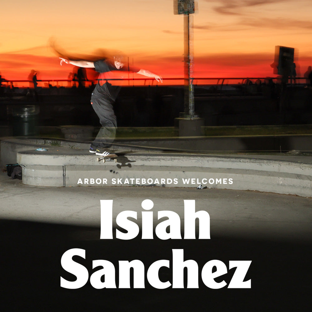 Venice local by way of Las Vegas, Isiah Sanchez has been in the mix with Arbor Skateboards for many years. Isiah is a true ATV who can traverse and air out on transition with control and authority as well as nonchalantly bust super technical ledge tricks in the streets. If there is a ledge with wax on it on the Westside of LA, Isiah has likely skated it. He's a soft spoken ripper with a laid back demeanor who lets his skating do the talking and stays putting in work. Arbor Skateboards is proud to formally announce Isiah to the team. Check out his introduction part and look forward to seeing more of Isiah in the very near future!