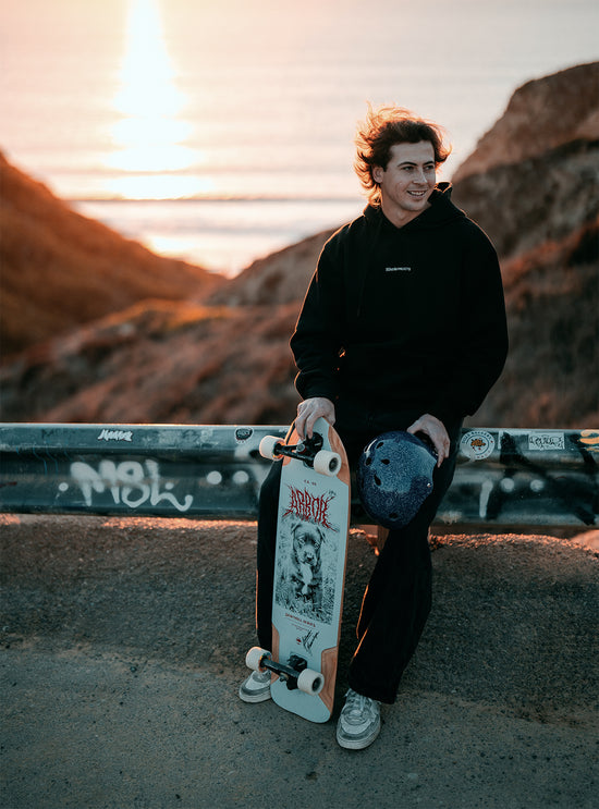 San Diego born and raised, Antonio “Tony” Madariaga has been chasing speed since he could stand on a board. What began on neighborhood hills turned into a lifelong pursuit of flow, control, and the cleanest lines in downhill skateboarding.