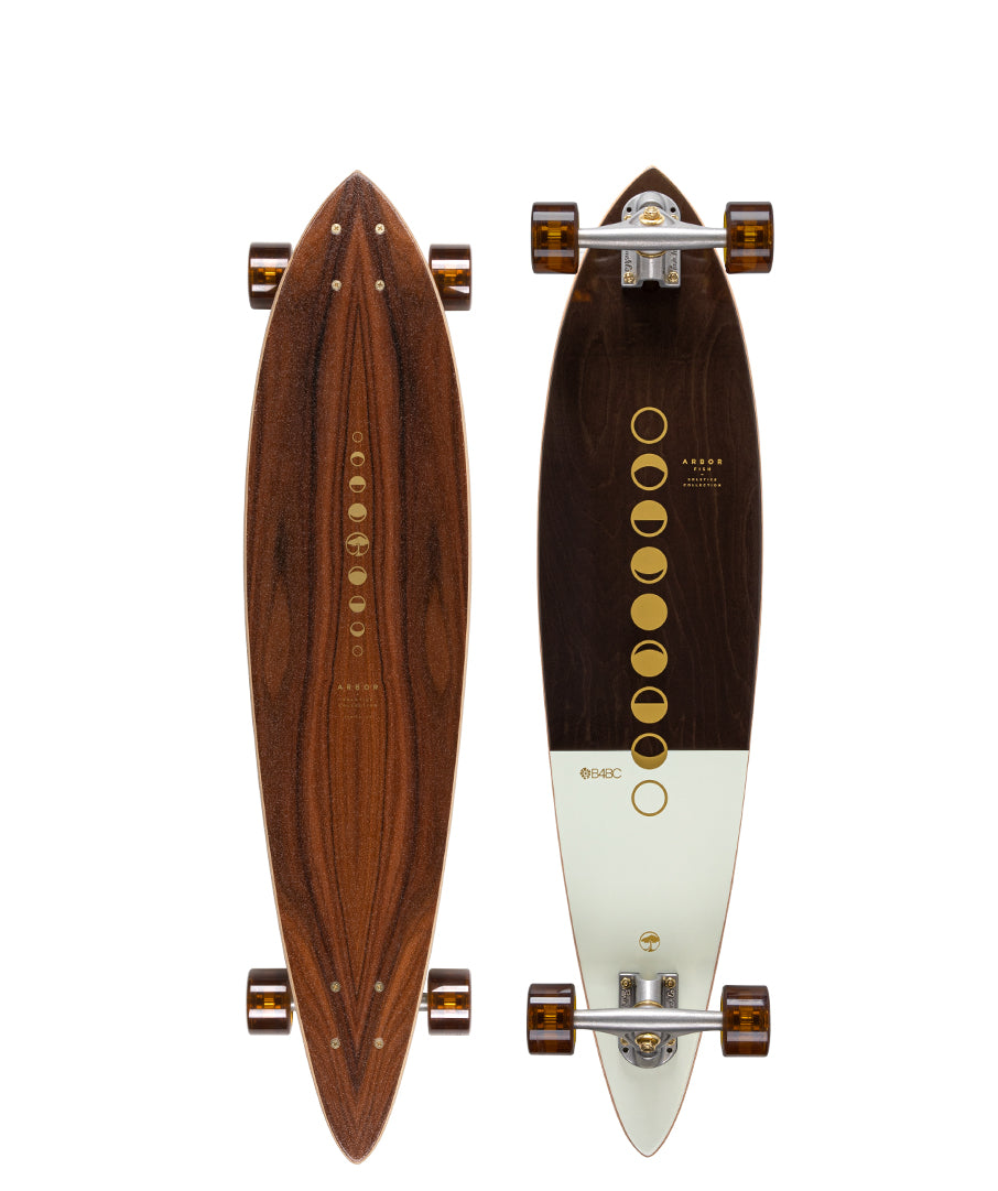 A compact pintail with an extended wheelbase and mellow flex for around town cruising and lower speed carving.